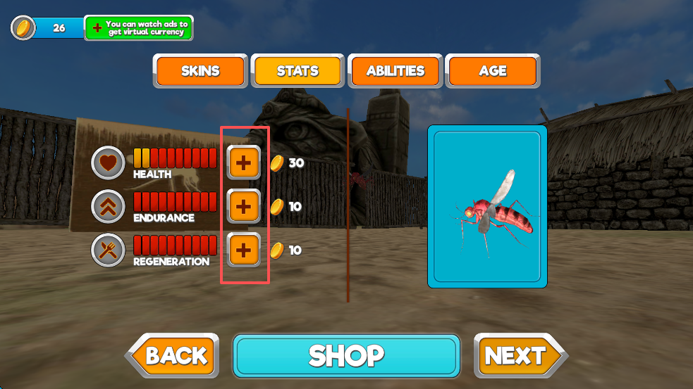 2、蚊子有很多种,你可以自己选择一种,然后就可以在地图上寻找猎物吸血了。