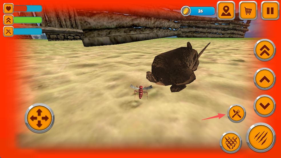 1、蚊子模拟器操作简单,在游戏里你将化身为一只蚊子,通过虚拟摇杆控制飞行,吸血。