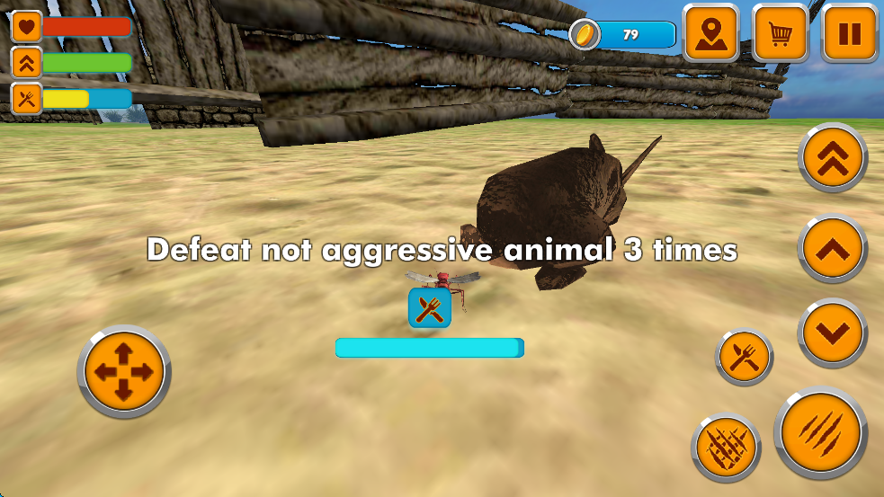 8、随后再去完成第二个任务,“击败3个没有攻击性的动物”,就想兔子之类的,但青蛙,蜘蛛不算,对于蚊子来说,这明显是具有攻击性的动物,任务由易到难,循环渐进,可以逐步提升玩家对游戏的理解,从而提高游戏水平。