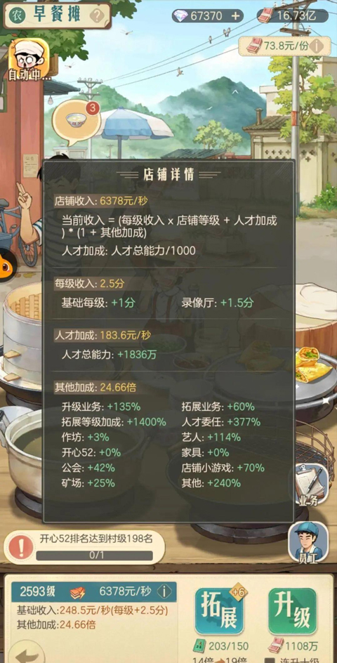 解锁正式关卡:早点摊达到一定等级后,解锁正式关卡。第一关是早点作坊,培训员工提升生产力。