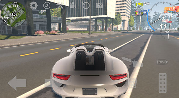 2.进入到游戏左边控制方向,右边控制油门和刹车,在开放世界游戏中玩家可以自由体验驾驶跑车带来的快感