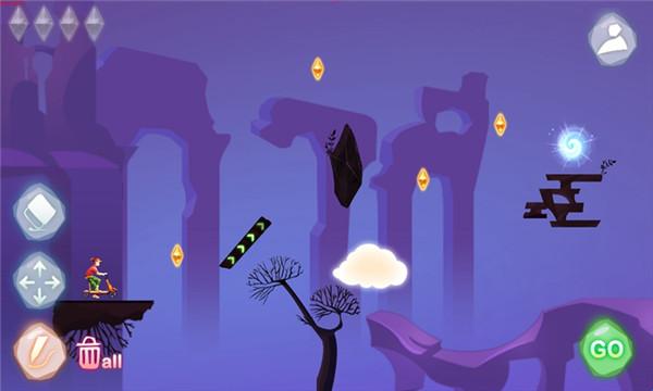1、使用神奇的画笔绘制出不同颜色的路径,引导角色沿不规则路线前行。