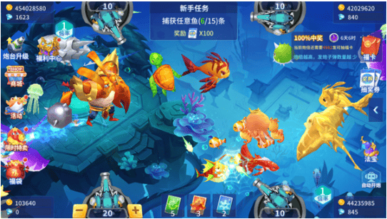 独家定制炮台皮肤与翅膀系统,让你在捕鱼世界中闪耀全场。