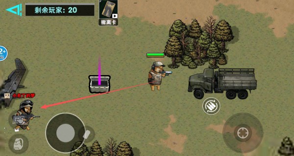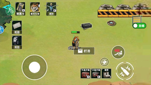 1、进入战场后,主动搜寻场景中的各类资源,靠近物资点击即可拾取。
