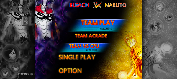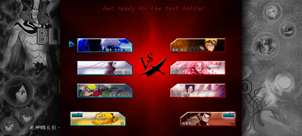2、从众多死神与火影角色中挑选你的3名主力角色,并为电脑对手也选定3名角色;