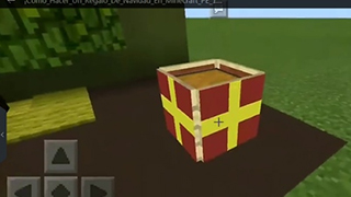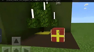 6、放置一个箱子作为礼盒主体,按住潜行键在其上方放置物品展示框,然后将绘制好礼盒图案的地图放入展示框中。最后在顶部添加同色系地毯进行装饰,完成整个礼物盒的立体效果。