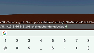 4、使用fill指令将两个坐标之间的区域填充为红色黏土。