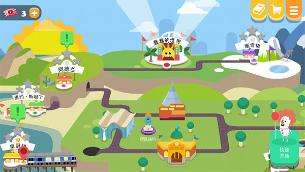 1、首次进入游戏可体验新手练习关卡,内容涵盖火烤汉堡、冲浪运动、沙滩排球、复活节之botch、复活节之numpty、复活节之lax、海盗冒险等多种趣味场景;