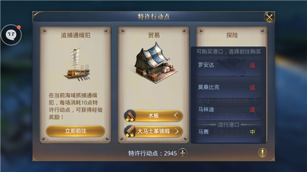 2、了解利润后,下一步就是高效运输货物。虽然船只货舱容量通常高达数百单位,但在单个港口每种商品的限购数量往往只有几十到一百多个,即使全部买下也难以装满货舱。举例来说,若你在加来以3200单价购入哥白林织锦毯,运至阿尔金以8200售出,单件利润达5000。若一次仅能买100件,总利润为50万;但若能一次性运输800件,利润将飙升至400万,效率提升8倍。那么如何突破限购限制?这就需要用到核心道具——采买许可证(俗称“星书”)。