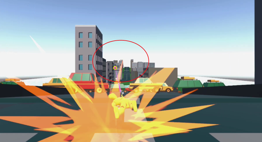 1、点击屏幕任意位置,即可甩出抓钩,角色会借助抓钩在摩天大楼之间飞荡穿行;