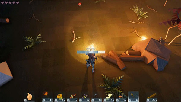 有了点火工具,自然需要燃料。最基础的燃料是木棍和木片,将它们组合即可制作“营火”。放置于任意位置并点燃后,可用于取暖、烹饪或照明。