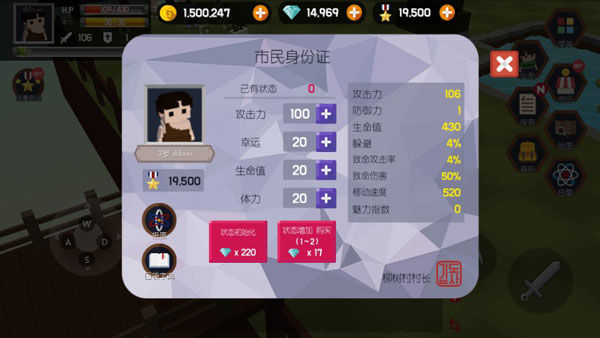 2、角色每提升一级即可获得一点属性加成,同时还能通过钻石购买额外属性点,进一步强化自身能力;