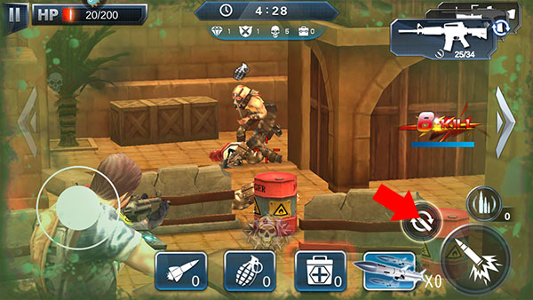 4、同时点击换弹按钮即可快速退回至障碍物中。
