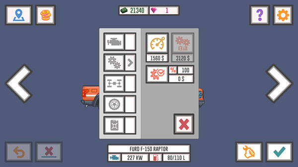 4、在改装界面中,你可以对货车的引擎、轮胎、油耗等关键部件进行升级与调整,打造专属座驾。