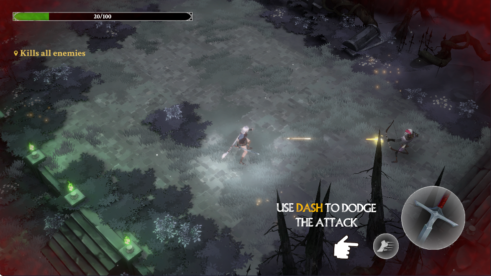 1. 进入游戏后,通过滑动屏幕来控制角色移动,灵活穿梭于地牢之间。