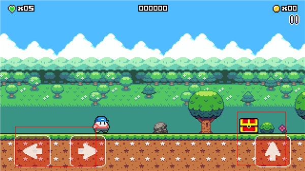 2、进入游戏,玩家可以通过左边的按钮来控制角色进行前后移动,右边的按钮可以控制角色在遇到障碍物时进行跳跃。