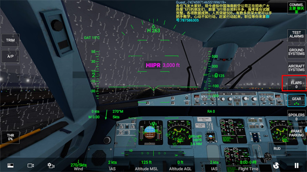 4,襟翼设定完成后,松开刹车(BRAKE),然后滑动左侧油门(THR)控制杆,将油门推至100%。