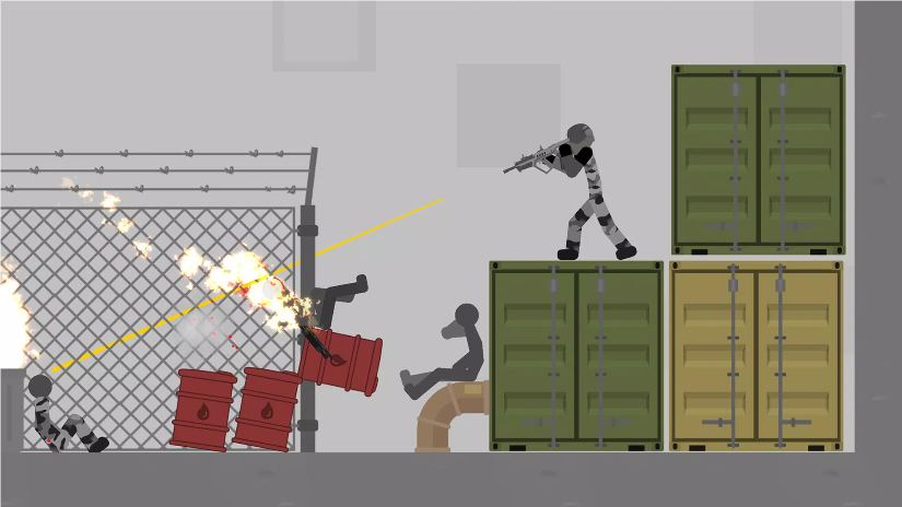 3、简约火柴人画风与丰富武器形成反差,既保持视觉简洁,又不失枪战的激烈感。