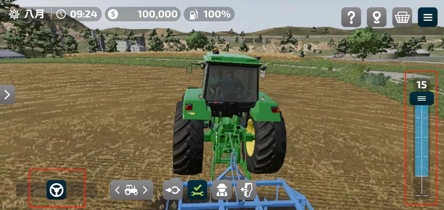 7、左侧方框内上下滑动控制车辆前进或倒车,左右滑动则用于调整方向;