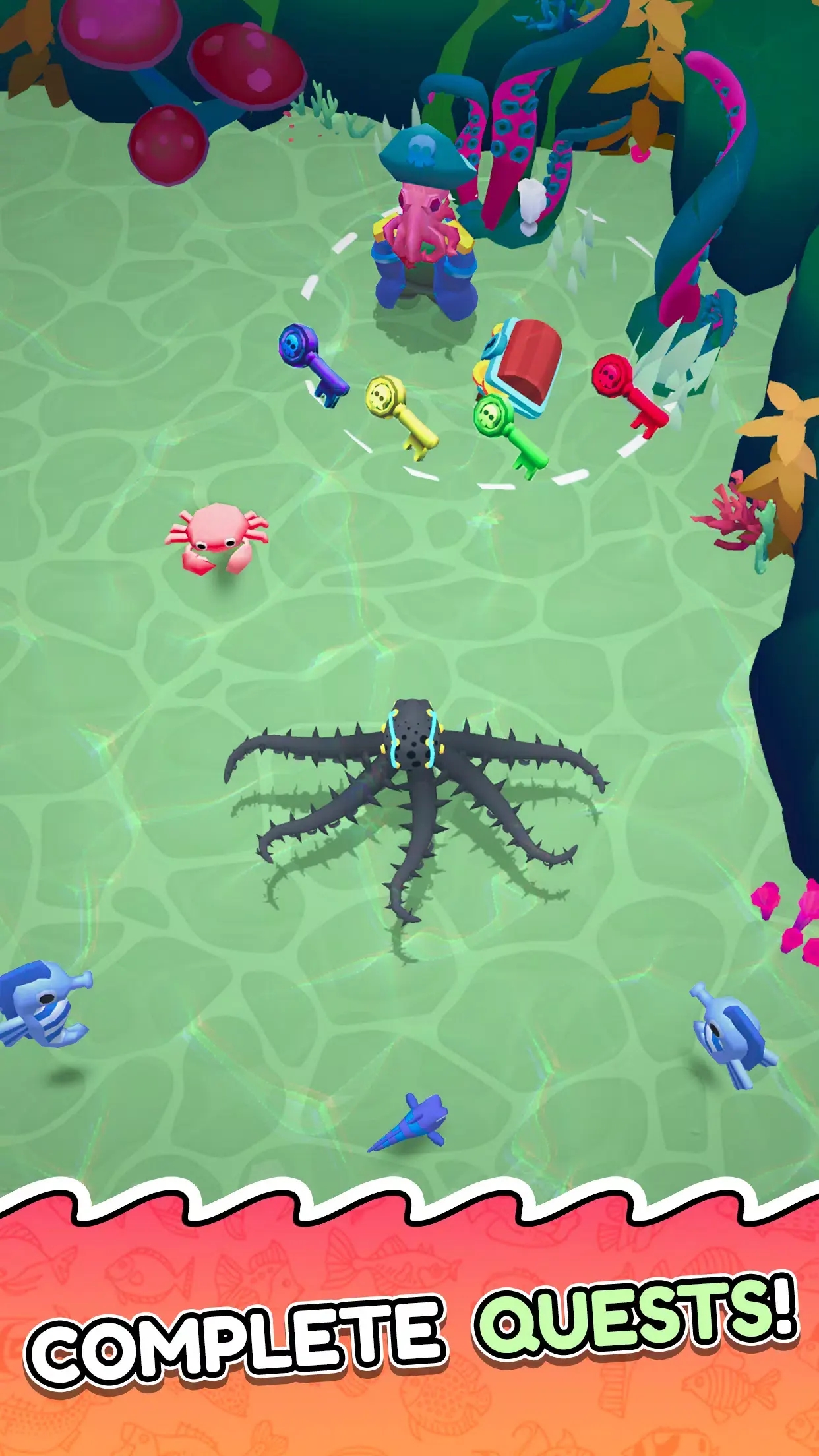 1. 收集散落在海底的钥匙,解锁稀有海洋生物与专属奖励内容。