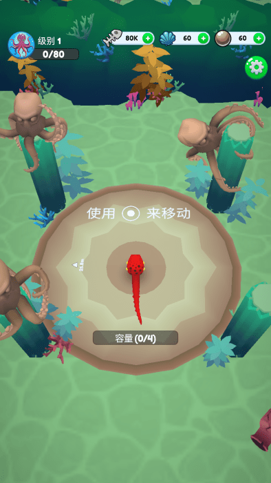 首先下载安装游戏,进入后点击设置可切换为中文语言。通过滑动屏幕控制章鱼移动。
