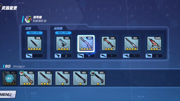 1、游戏主界面左下角设有MENU菜单,包含大厅、队伍编辑、强化、进化、武器及对话回溯六大功能入口。