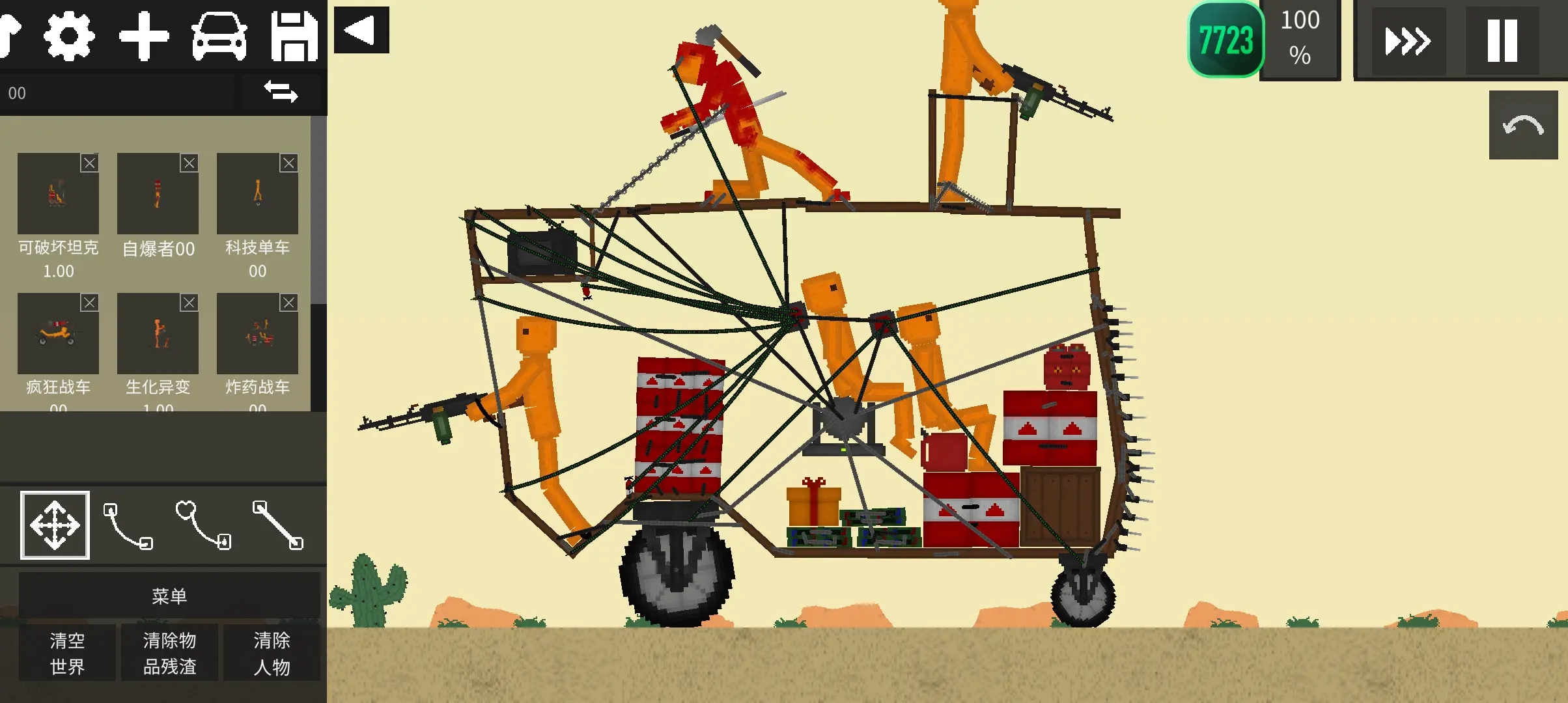 高自由度:游戏提供开放式的沙盒环境,玩家可随心所欲地创造、破坏或实验。从零开始构建专属战场,自定义地形、陷阱、武器配置乃至战斗规则,一切由你掌控。