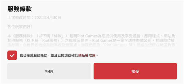 6、阅读并勾选服务条款,点击“接受”即完成注册。