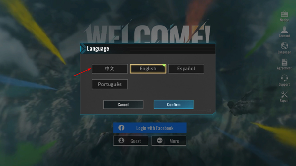 1、启动游戏后,在主界面右侧找到并点击“Language”选项;