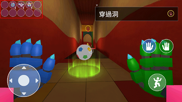 2、屏幕左下角为虚拟摇杆,用于控制角色自由移动;右侧则为左右手掌按钮,方便玩家拾取或操作物品。