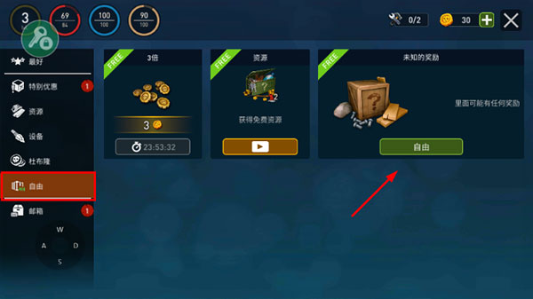 2、在商店页面中选择“自由”选项,点击进入;