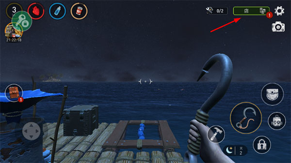 游戏开始时,你仅有4块木板构成的活动空间和一个基础钩子。此时鲨鱼会周期性袭击你的木筏,若不及时防御,它会一块接一块地啃食船体,直至彻底摧毁。因此,务必第一时间用钩子打捞海面漂浮物,积累初始资源。