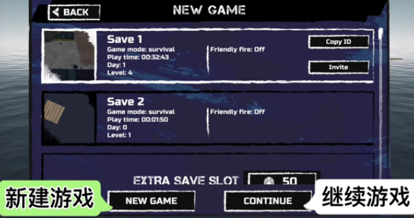 联机功能是最大亮点,支持好友通过房间ID直接加入,共同分工——一人钓鱼、一人建造、一人防御鲨鱼,大幅提升生存效率。