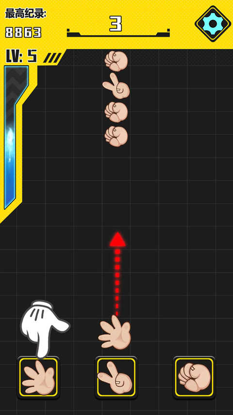3、对手的手势会随机变化,胜负往往在最后一刻揭晓,充满悬念与乐趣。