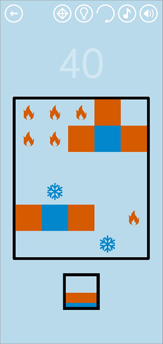 60. 第六十关:推动冰块融化岩浆,使两个红球最终相遇。