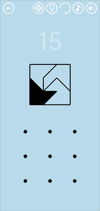 15. 第十五关:在下方九宫格中,依次画出每个小部分对应的形状,参考下图。