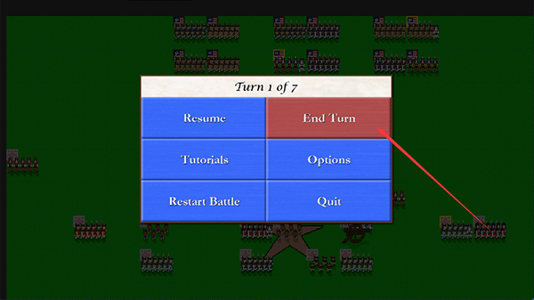 4、当我方所有单位完成移动与攻击后,点击“End Turn”结束当前回合,轮到AI执行行动;
