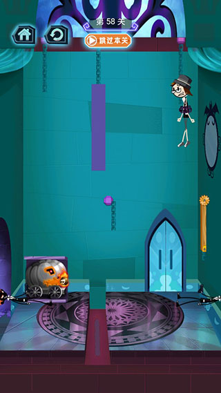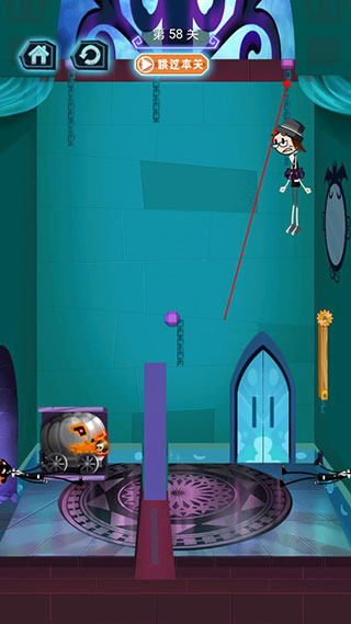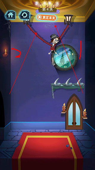 3、第三关就需要稍微慎重一点了,先割断左边的绳子,再割断右边的绳子即可。