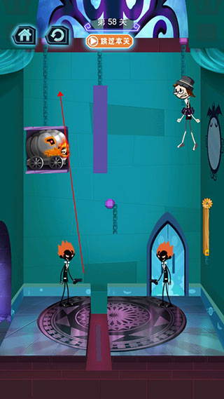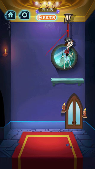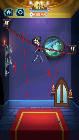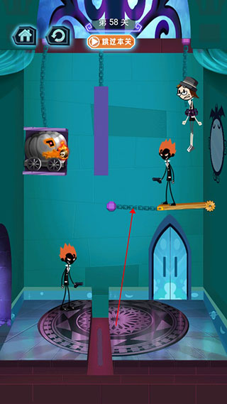 2、这一关卡非常简单,只需要割断火柴人头上的绳子就能通关。