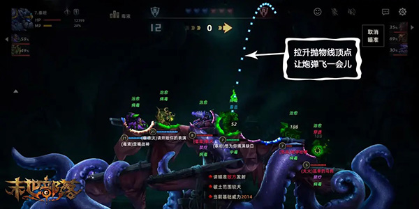 4、炮弹飞行时间越长,落地威力越大。建议在确保命中前提下,尽量拉高抛物线顶点,延长滞空时间,从而造成更高伤害。