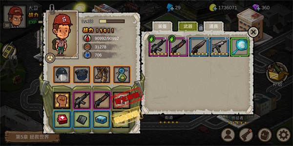 2、第二章第7关刷弹夹(求助警察局):从这一关开始可重复刷取弹夹,无论是手动还是扫荡都有效。建议第一层清完僵尸后直接前往第二层找NPC协助战斗,弹夹是后续推图的重要保障,多刷几次3-3并不难。