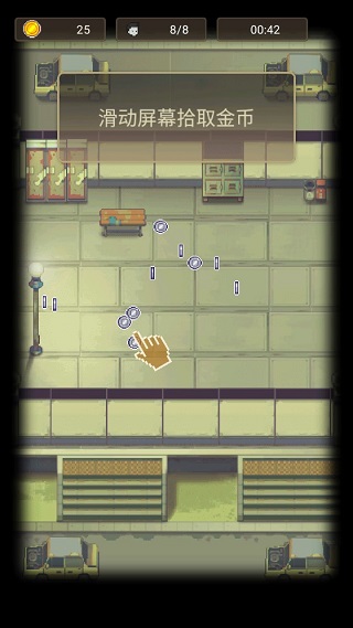 滑动屏幕收集战斗中掉落的金币资源,用于后续强化升级。