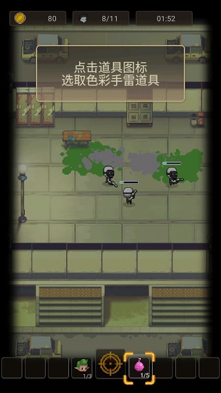 点击道具栏图标,选择色彩手雷等辅助装备,在关键时刻扭转局势。