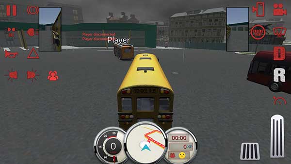 5、进入驾驶界面后,左下为刹车,右下为油门,通过重力感应控制方向;上方设有前进/倒车挡位,小眼睛图标用于切换第一人称与第三人称视角;顶部为地图导航,屏幕中间底部包含转向灯与雨刷器按钮。