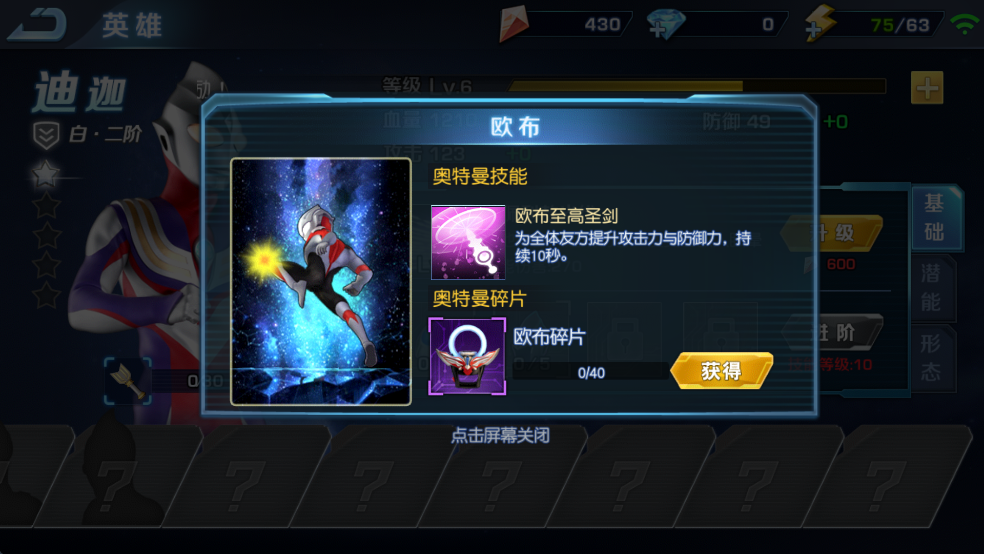 3. 星级突破:通过刷取对应副本获取碎片,迪迦、银河、麦克斯、高斯为前期最易获取来源