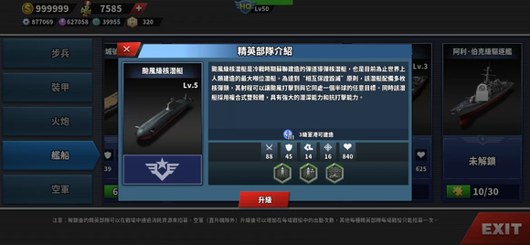 7、海军各有千秋,潜艇巡洋舰和航母都有用,所以在20级时,我们买12个装步,6个潜艇,4个巡洋舰