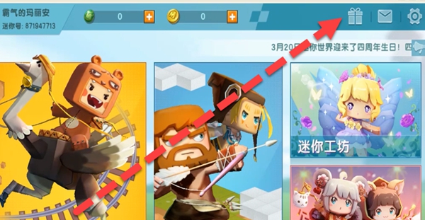 然后第二步呢,就是大家在兑换成功之后,可以在我的订单中复制这个激活码,再打开迷你世界,然后点击右上角的礼物盒;