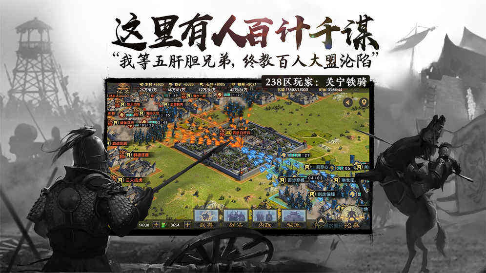 汉失其鹿,百万诸侯共逐之。高效经营一方之地,方可在乱世谋得勃勃生机。谋夺资源产地,高效使用资源,合理调配税收,善用科技树系统发展城建、城防、兵营等各种建筑。工欲善其事,必先利其器;国欲强其力,必先固其本。
