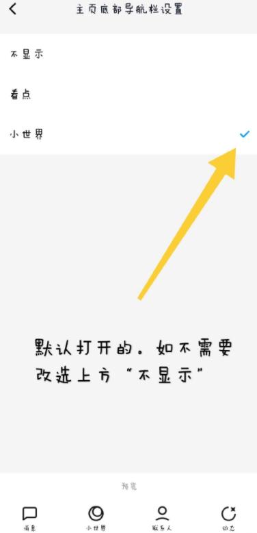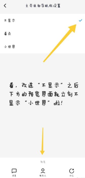 3.看,改选“不显示“之后下方的预览界面就立刻不显示“小世界“啦!