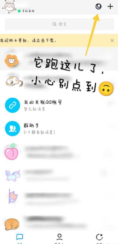 4.不过,关掉底部导航栏之后,它会跑到你手机QQ的右上角去。